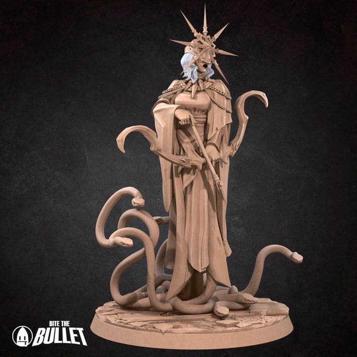 Una miniatura detallada de Gwyndolin el enigmático hijo de Gwyn, capturando su apariencia andrógina, sus múltiples serpientes como extremidades y el poder arcano de la luna oscura que emana de él. Perfecto para coleccionistas y jugadores que buscan agrandar su coleccion de Dark Souls.