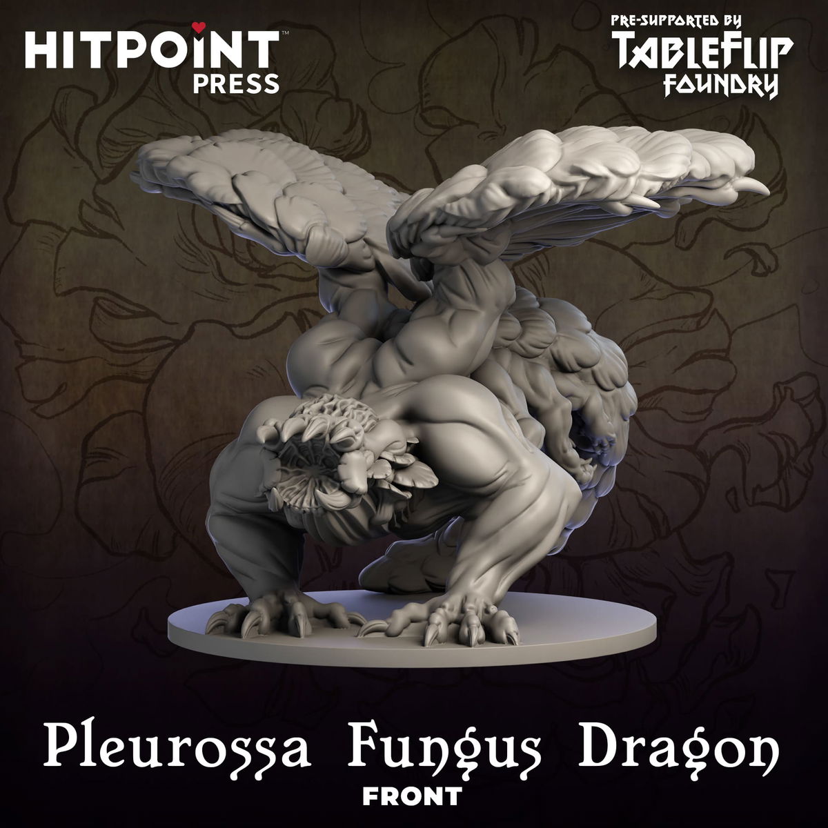 - Impresa con tecnologia 3D de ultima generacion se captura la repulsiva pero fascinante anatomía del Dragón Hongo Pleurossa. Los detalles de sus escamas esponjosas que parecen sombreros de hongos, sus dientes afilados y su gruesa cola arrastrada imprieron fielmente. La miniatura refleja la naturaleza grotesca y amenazante de esta criatura fúngica, con texturas que invitan a un trabajo de pintura que resalte su corrupción y su origen micelial.