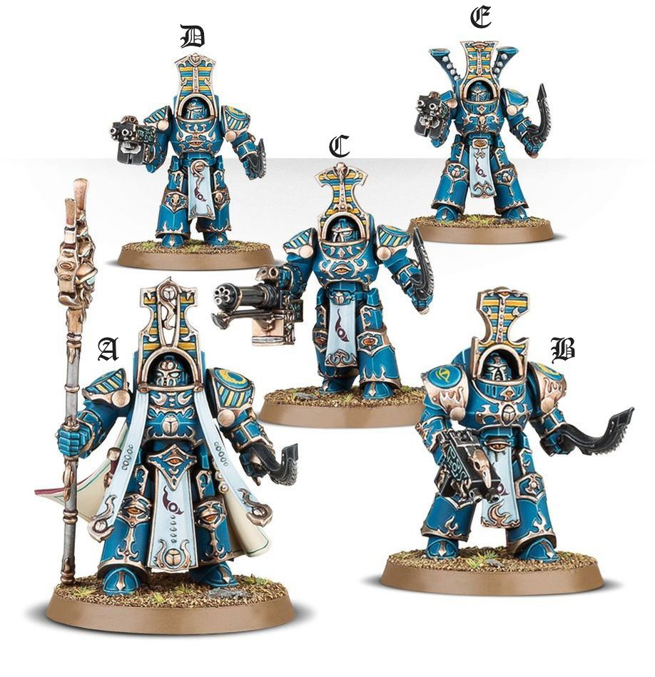 "Los Scarab Occult Terminators luchan con la misma destreza despiadada que cuando eran los guardaespaldas vivientes de Magnus el Rojo. Atacan al corazón del enemigo, llegando mediante teletransportación mágica. Blandiendo feroces espadas rituales basadas en el antiguo khopesh de Prosperine, desgarran a las víctimas que no son abatidas por sus salvas de fuego letal."