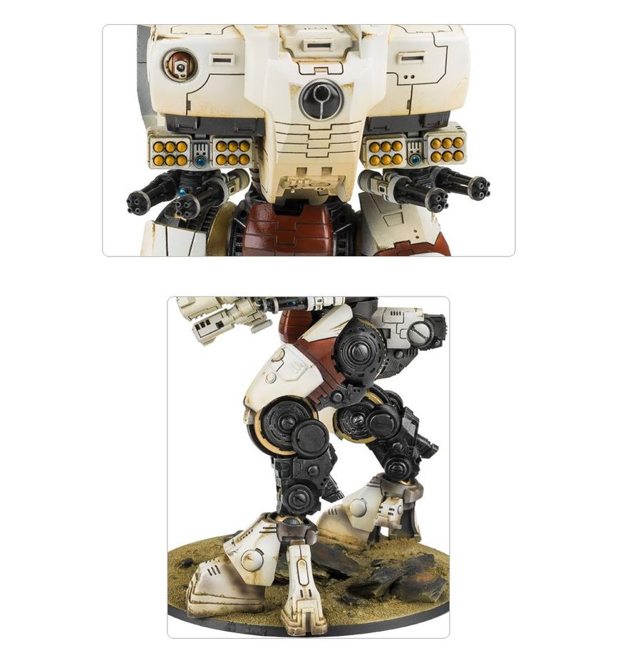 "La armadura de Supremacía T'au es más grande que cualquier otra armadura de combate actual. Está diseñada para una tarea que el Imperio T'au aún no ha tenido que afrontar: la defensa de los mundos dentro de su creciente dominio contra las fuerzas de contraexpansión de otras razas. Al carecer de la maniobrabilidad de otras armaduras de combate, la Armadura de Supremacía Ta'unar KX139 fue diseñada para la defensa estática, portando armas de largo alcance de gran destrucción."