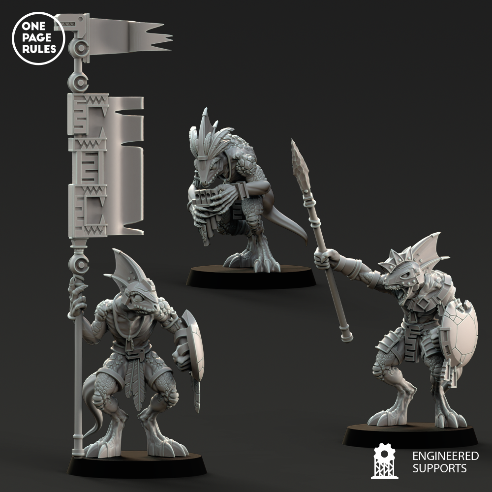 Estas miniaturas representan a los Eslizones. Hechas con una atención meticulosa a los detalles, estas miniaturas capturan la esencia de la antigua raza reptiliana en un formato de alta calidad.