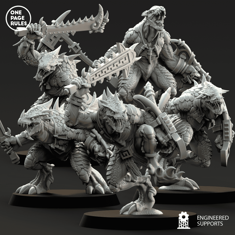 - Estas miniaturas de Guerreros Saurios han sido creadas con tecnología avanzada de impresion 3D, lo que garantiza detalles precisos y nítidos en cada parte de la figura. Los Guerreros Saurios están meticulosamente hechos para capturar su apariencia reptil y los detalles de sus armas y armaduras tribales.