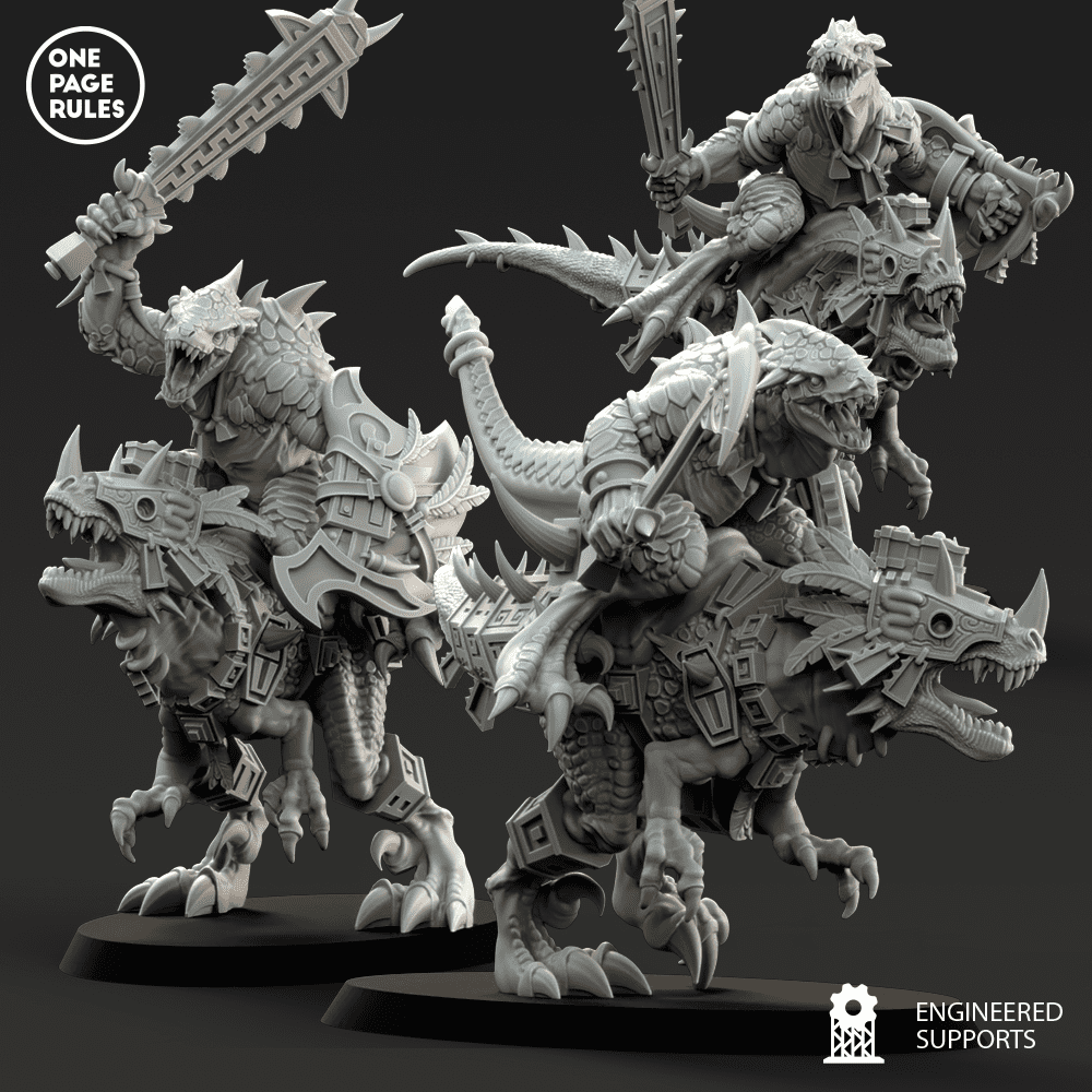 - Los Jinetes de Gelidos son la elección perfecta para aquellos que buscan una unidad de choque rápida y mortal. Su ferocidad en la carga, combinada con la velocidad de los Gelidos, les permite desgarrar las filas enemigas y abrir brechas en las defensas oponentes. Son una adición esencial a cualquier ejército de los Hombres Lagarto.