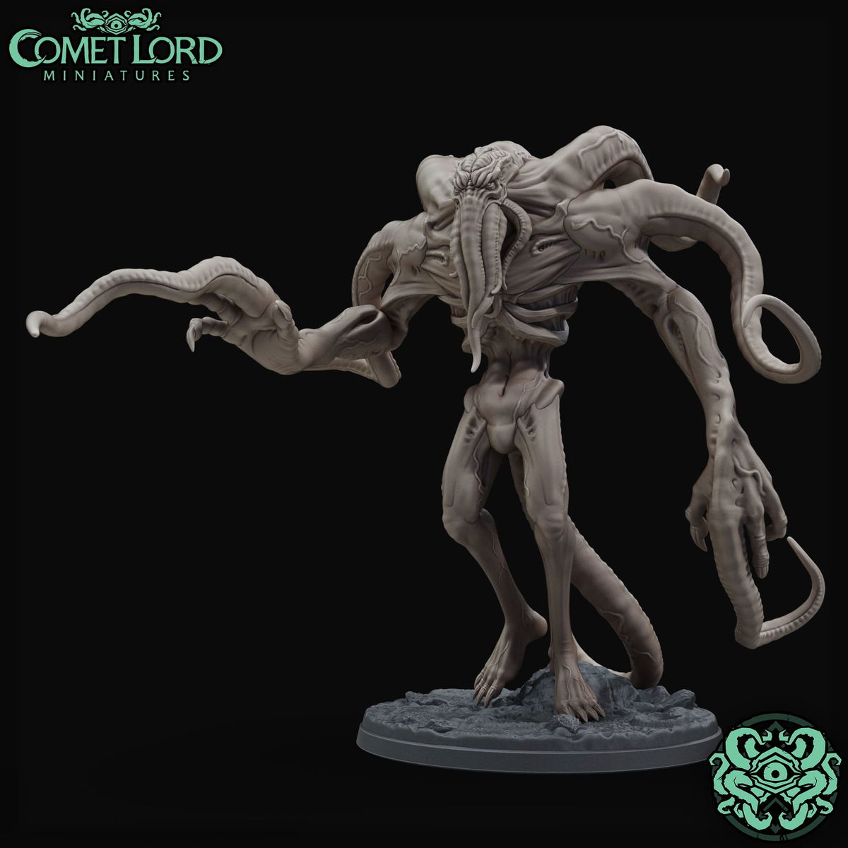Esta miniatura representa a una de las más terribles creaciones de los desuellamentes, un gigante que fue sometido a un proceso de transformación que lo convirtió en una monstruosidad aberrante. Su cabeza está cubierta por un enorme renacuajo que se alimenta de su cerebro, y su cuerpo está deformado por el poder psiónico. Es una criatura de pesadilla que aterroriza a sus enemigos con su fuerza bruta y su mente retorcida.
