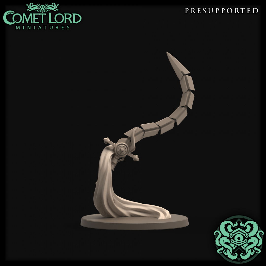 - La miniatura está impresa con un alto nivel de detalle, que refleja las características del personaje y sus armas. Se puede apreciar la textura de la capa, el diseño de la espada en cadena, la forma de la lanza y el mecanismo de la ballesta. La miniatura está impresa en 3D con una alta resolucion, lo que garantiza una calidad óptima y una fidelidad al modelo original.