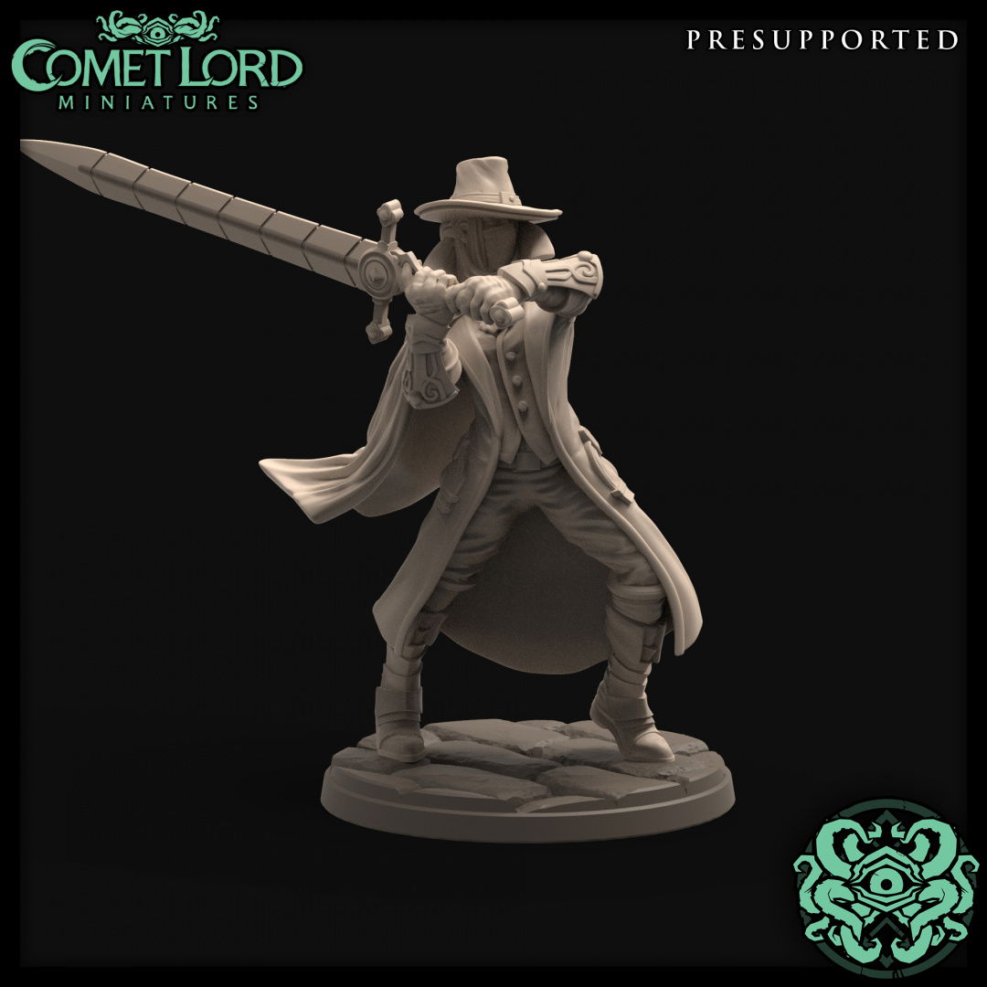 - Esta miniatura puede desempeñar un papel muy importante en el mundo del rol, ya que representa a un personaje que se dedica a cazar monstruos, una actividad muy común y peligrosa en muchos escenarios de fantasía. Puede ser un héroe que protege a los inocentes de las amenazas sobrenaturales, o un antihéroe que busca venganza o redención por algún pasado oscuro. Tiene unas armas muy versátiles que le permiten enfrentarse a diferentes tipos de enemigos. también puede ser útil para escenas de interacción social, ya que puede tener una personalidad interesante y misteriosa, o para escenas de exploración, ya que puede tener habilidades de rastreo, supervivencia o sigilo.