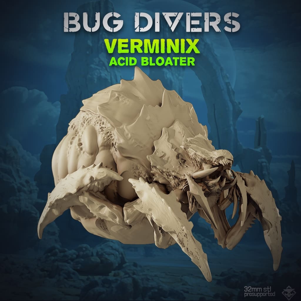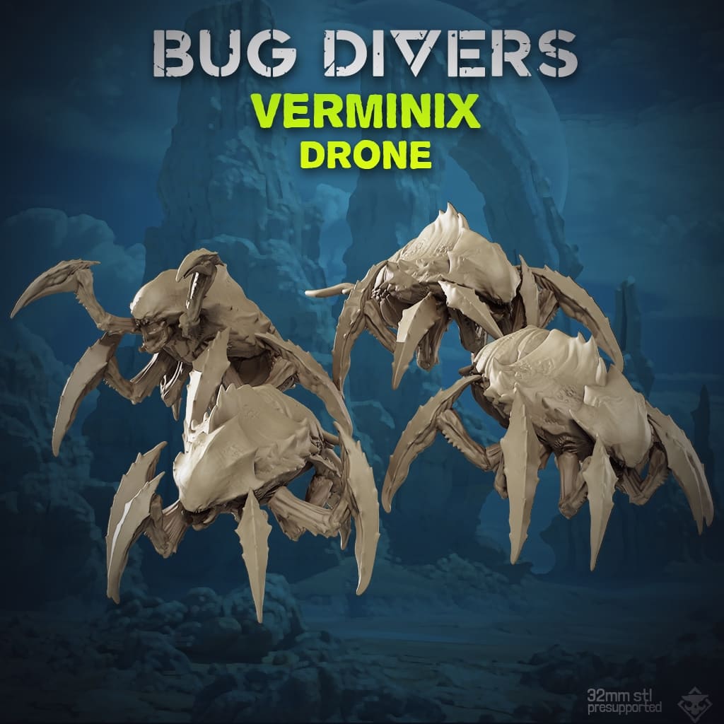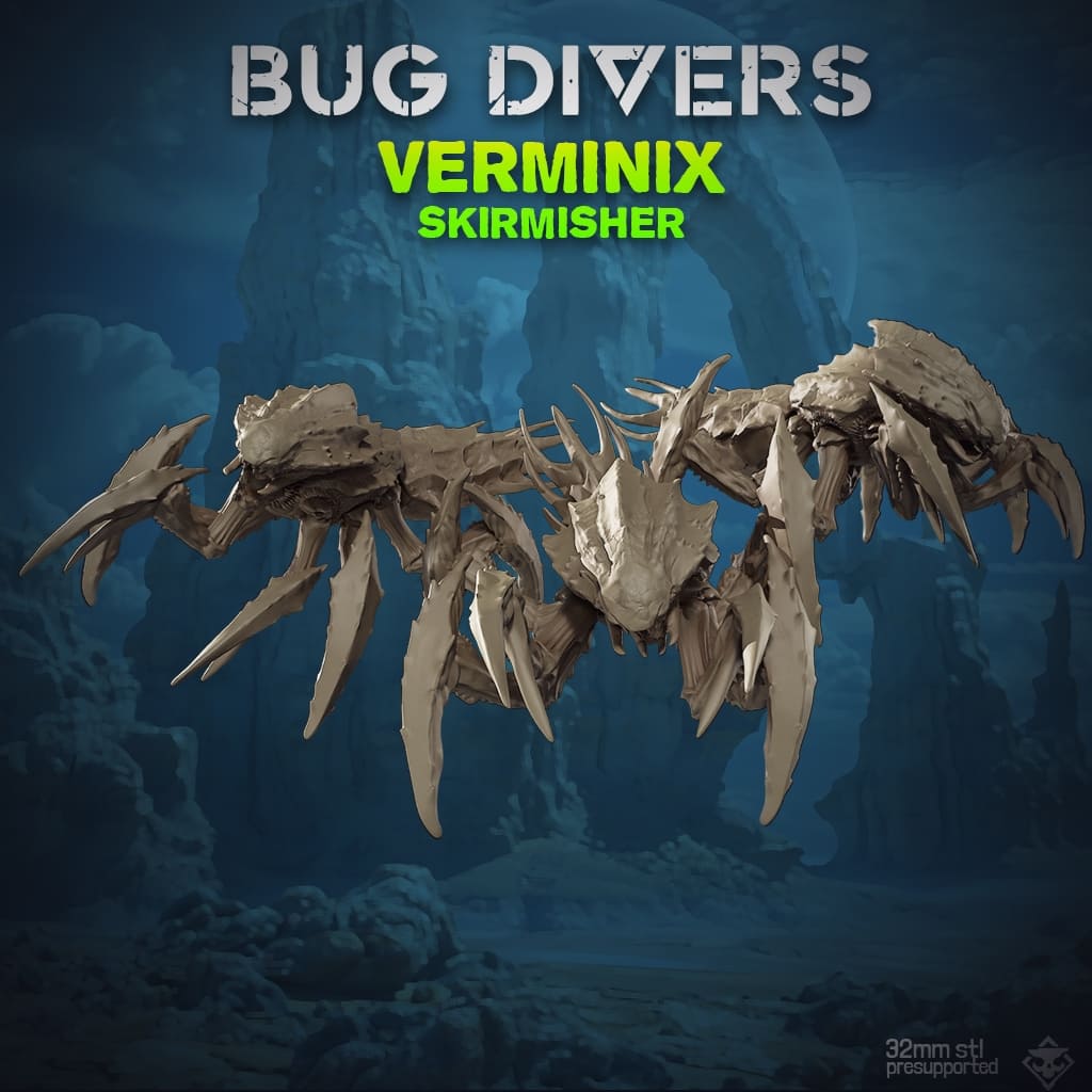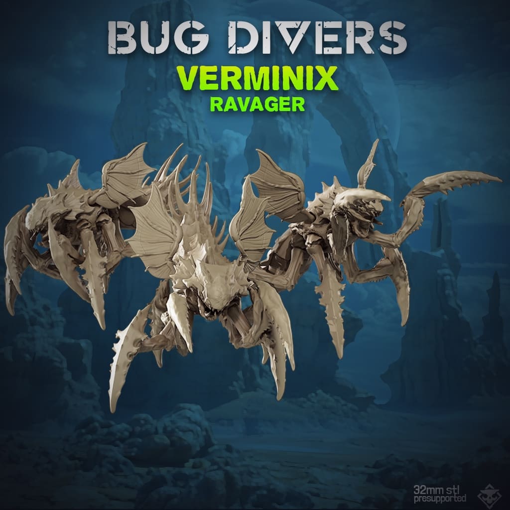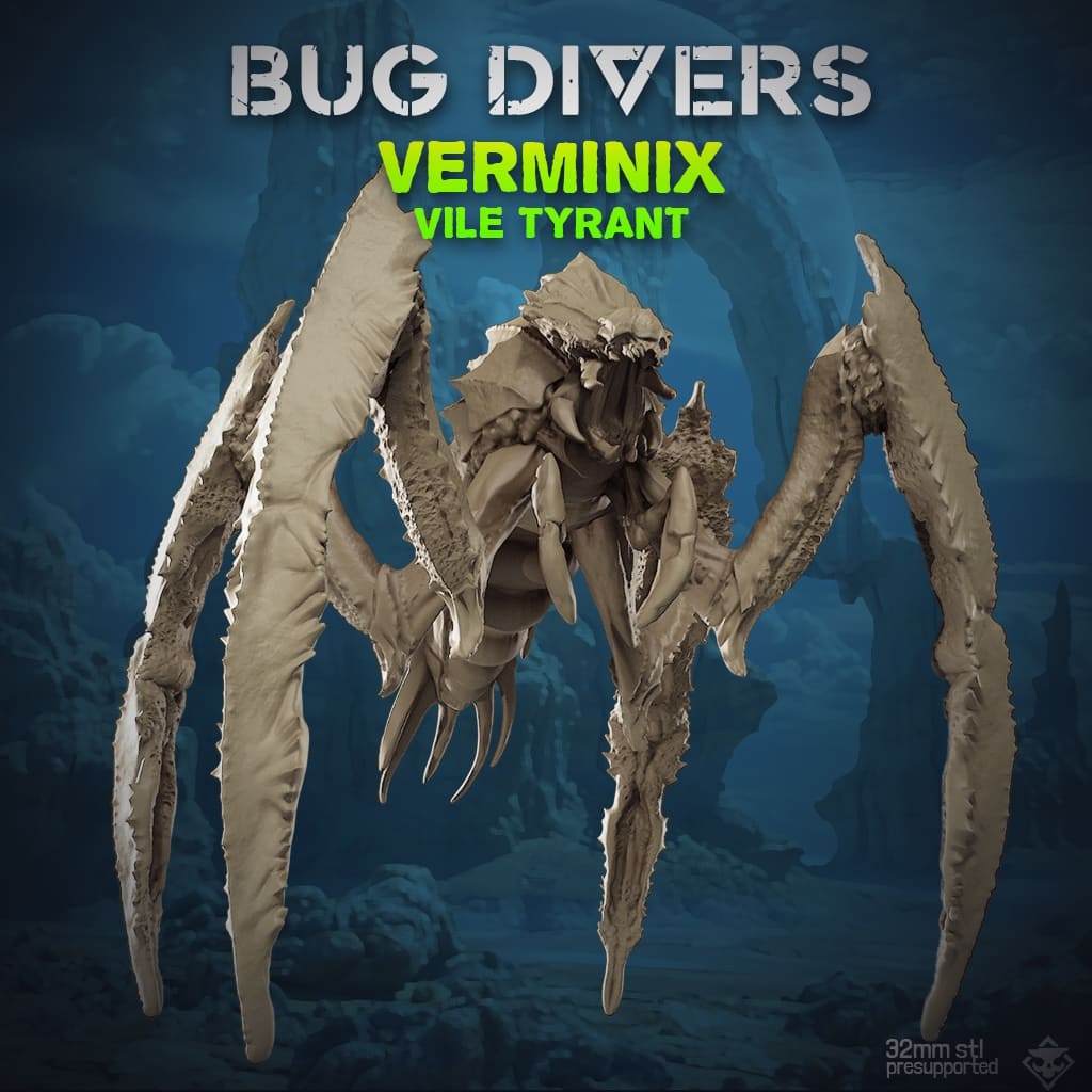 - Cada miniatura de Termínido está creada con impresión 3D de última generación, asegurando una precisión milimétrica en cada detalle, desde las texturas de sus placas insectoides hasta sus horribles garras y dientes.